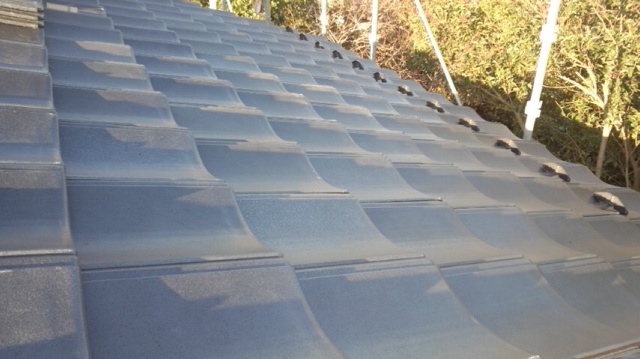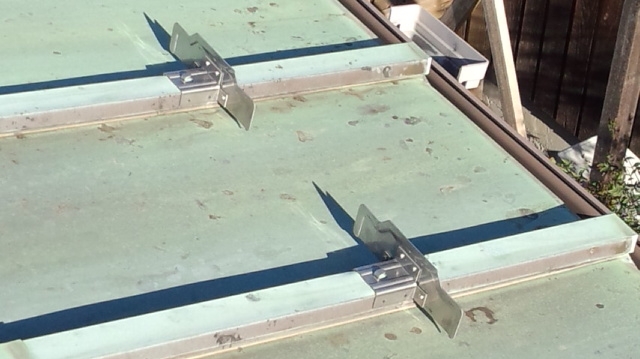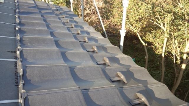 小坪で雪止め金具の取り付け工事を行いました。瓦棒葺き屋根、和型青緑色瓦屋根と2種類のステンレス製雪止め金具の取り付けです。