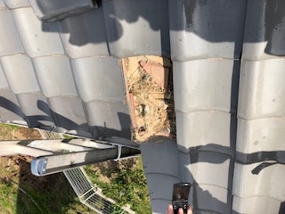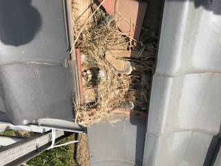 軒先の唐草瓦裏の隙間から瓦と野地板の間に入り込み巣を作ります。ゴールデンウィーク明けにはヒナたちは飛び立ちますので駆除はいたしません。