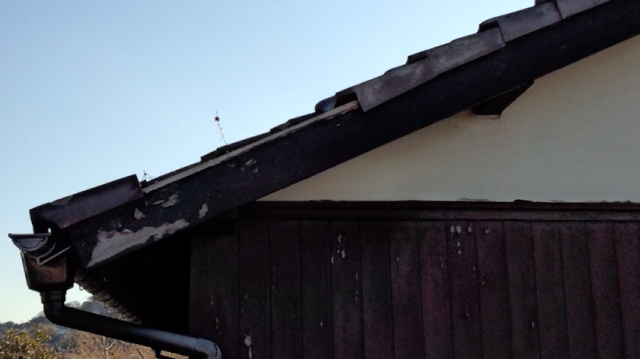 築45年以上、のし瓦がズレ始めほおっておくと雨漏りの原因となります。昔の施工方法なために、のし瓦(かまぼこのいたのような瓦の部材)を銅線で留めていない為にずりさがって来ています。