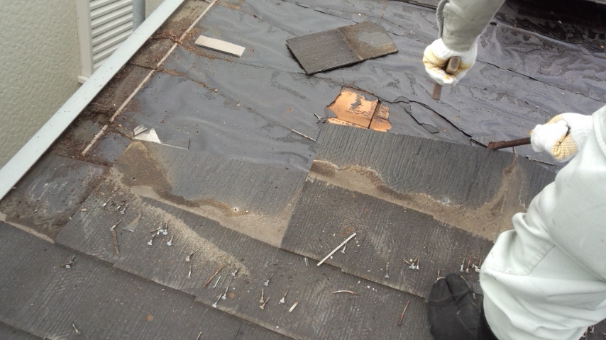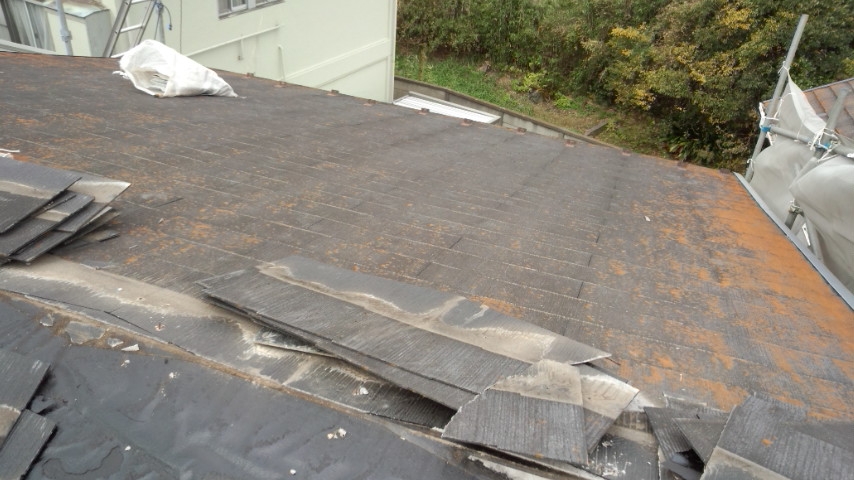 今日も2階屋根部のコロニアル葺き替え工事。