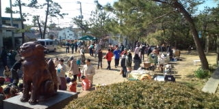 風もおさまり小春日和の中、第1回神明社あさいちが行われました。ご近所のおばあちゃんたちや小さなお子様連れの30代のご家族連れが多く来場していただき無事に成功いたしました。節分の豆まきも行い皆で楽しめました。われわれ下山会は25キロの餅米を7臼つき、6個入り150パック350円を1時間ほどの間に完売いたしました。好評のために来月は30キロ分の餅を販売いたします。来月は3月3日の第1日曜日、9時より11時ですがつきたてのあんころ餅は10時ごろには売り切りになりそうです。あしからず