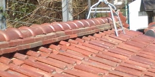 今日は葉桜のM邸と一色のT邸の瓦屋根の補修工事にかかりました。大棟の取り直し、大棟面戸の漆喰の塗り直しを行います。大棟ののし瓦、丸瓦の状態、漆喰が塗ってある所の台面部分の状態により取り直すか漆喰の塗り替えだけで済ませるか判断します。